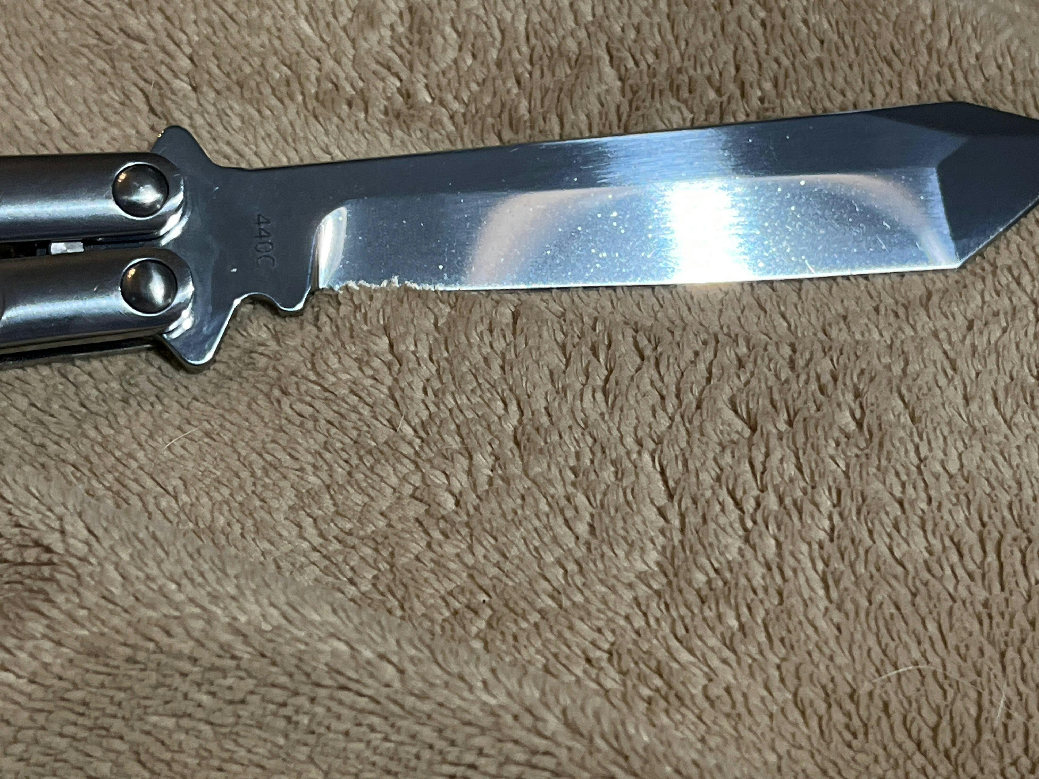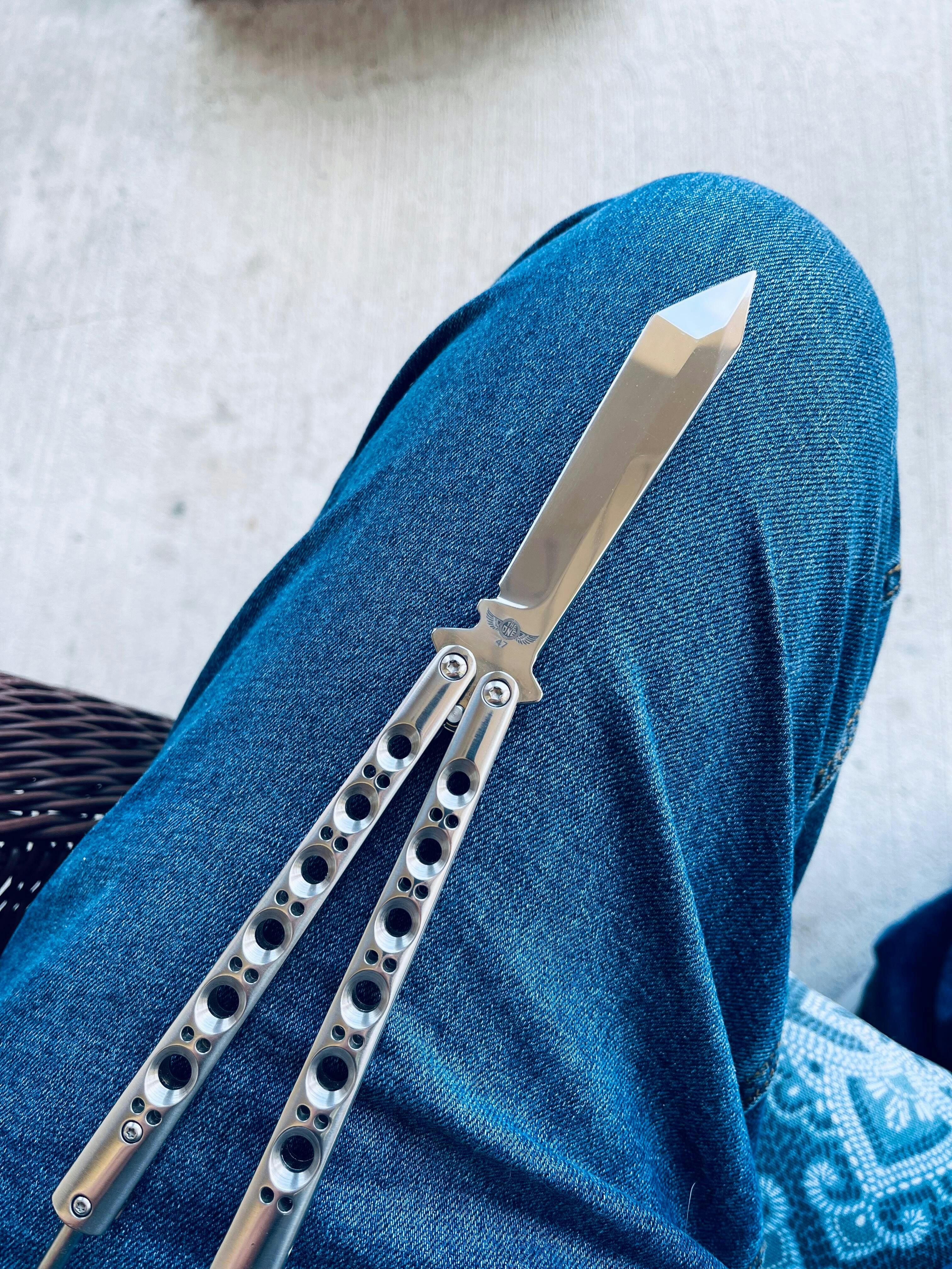 "The ONE" 4X series Butterfly Knife w/ BUSHINGS 440C channel construction and Spring Latch - Highest Quality Benchmade Clone BM 40 42 43 46 47. One of the most sought after Balisongs, now IN STOCK. This is the BEST version, NOT the cheaper ones that look just like it. Featured as one of S2G's premium butterfly knives.